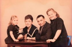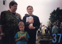 | 37 | famgot1 – Luis konfirmation 1990. Laila, Lasse, Lui foran Nørresundby kirke |
