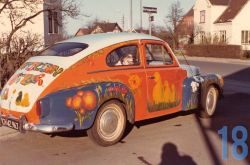 | 18 | famgot1 – Olga den første. Volvo 444 med hele familiens kunstværk på. Trine hunden på bagsædet. |