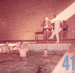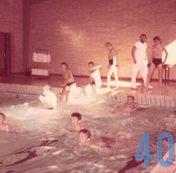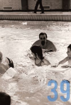 | 39 | gogl – Skansevejens Skoles svømmehal maj 1972 Bademester Sonne i vandet. |