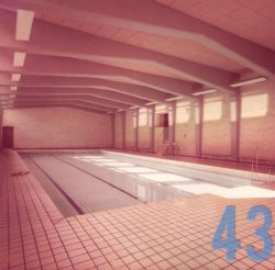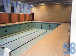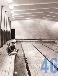 | 43 | gogl – Skansevejens Skoles svømmehal. Fra den første tid. Selve bassinet. Trappen leder op til bademester Sonnes kontor. |