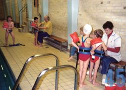 | 54 | gogl – Skansevejens Skoles svømmehal. Farvel og tak 1991. Fra lukning af bad og vandrensning. Fotograf Villy Pedersen. |