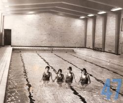 | 47 | gogl – Skansevejens Skoles svømmehal. Fire glade badenymfer i vand. |