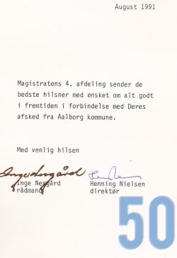 | 50 | gogl – Skansevejens Skoles svømmehal. Farvel og tak 1991. Fra Magistraten. |