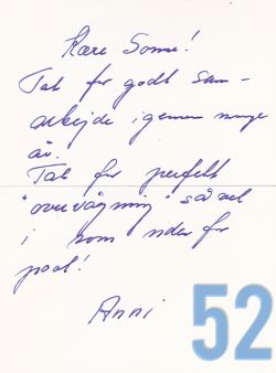| 53 | gogl – Skansevejens Skoles svømmehal. Farvel og tak 1991. Fra Hanne Halberg, Linda og Else Hansen (red. lære på skolen) |