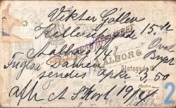| 0001b | Viktor Gøttler , Hellerupsgade 15. tv, Aalborg 1/4, år 1914, pris 3,50 (Ole Gøttlers bror) |